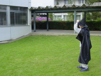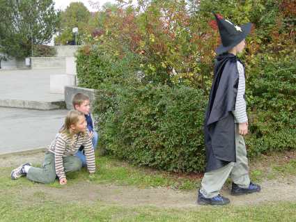Er ging wieder zum Schulhaus, verhielt sich aber sehr merkwürdig. Zwei neunjährige Kinder wurden neugierig und verfolgten ihn.